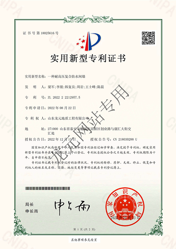 一种耐高压复合防水闸墙